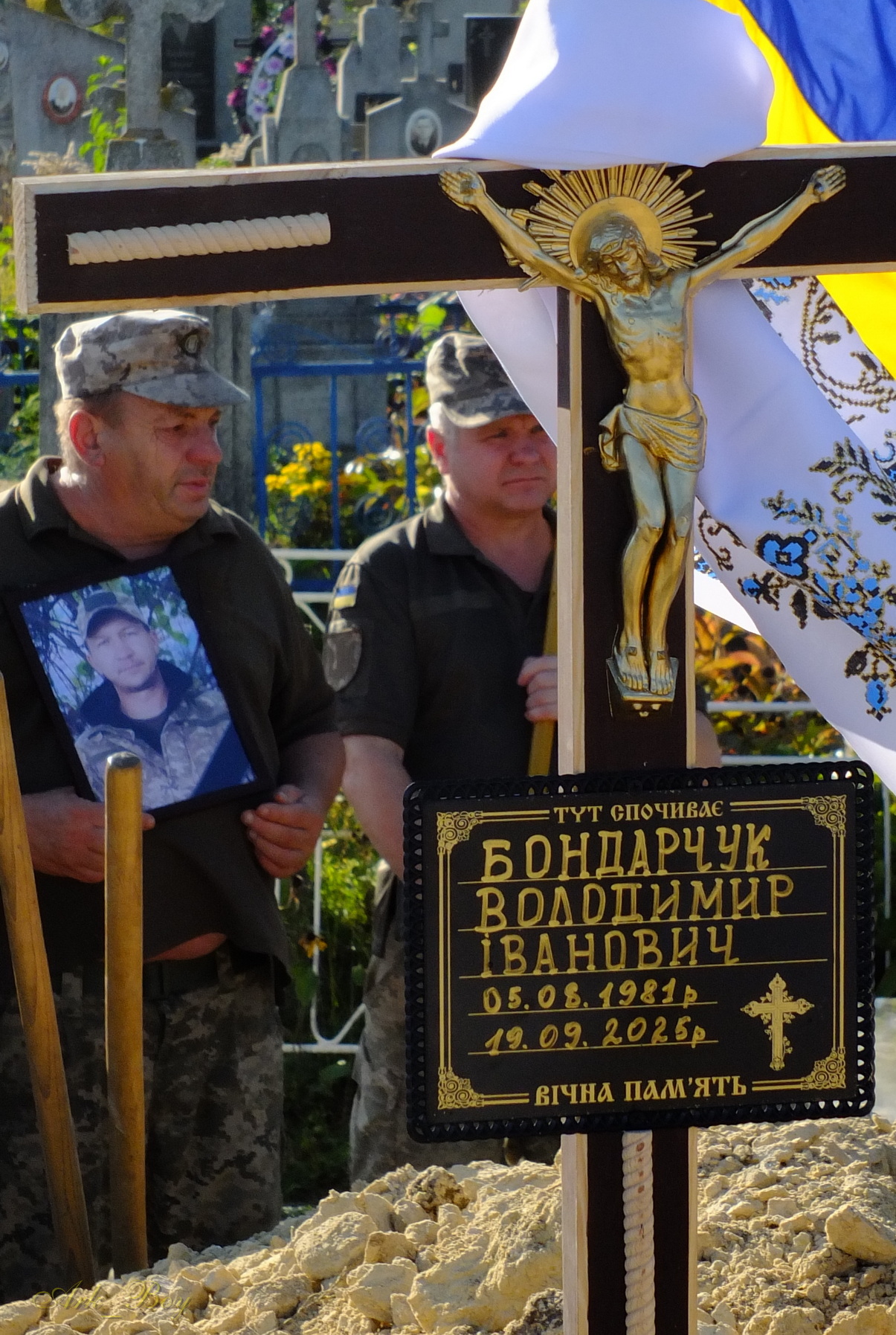 З Володимиром Бондарчуком прощалися у неділю. Домовину із тілом померлого воїна проводжали вулицями міста під звуки військового оркестру. Чин похорону відбувся у храмі Преображення Господнього Православної Церкви України м.Шумськ.