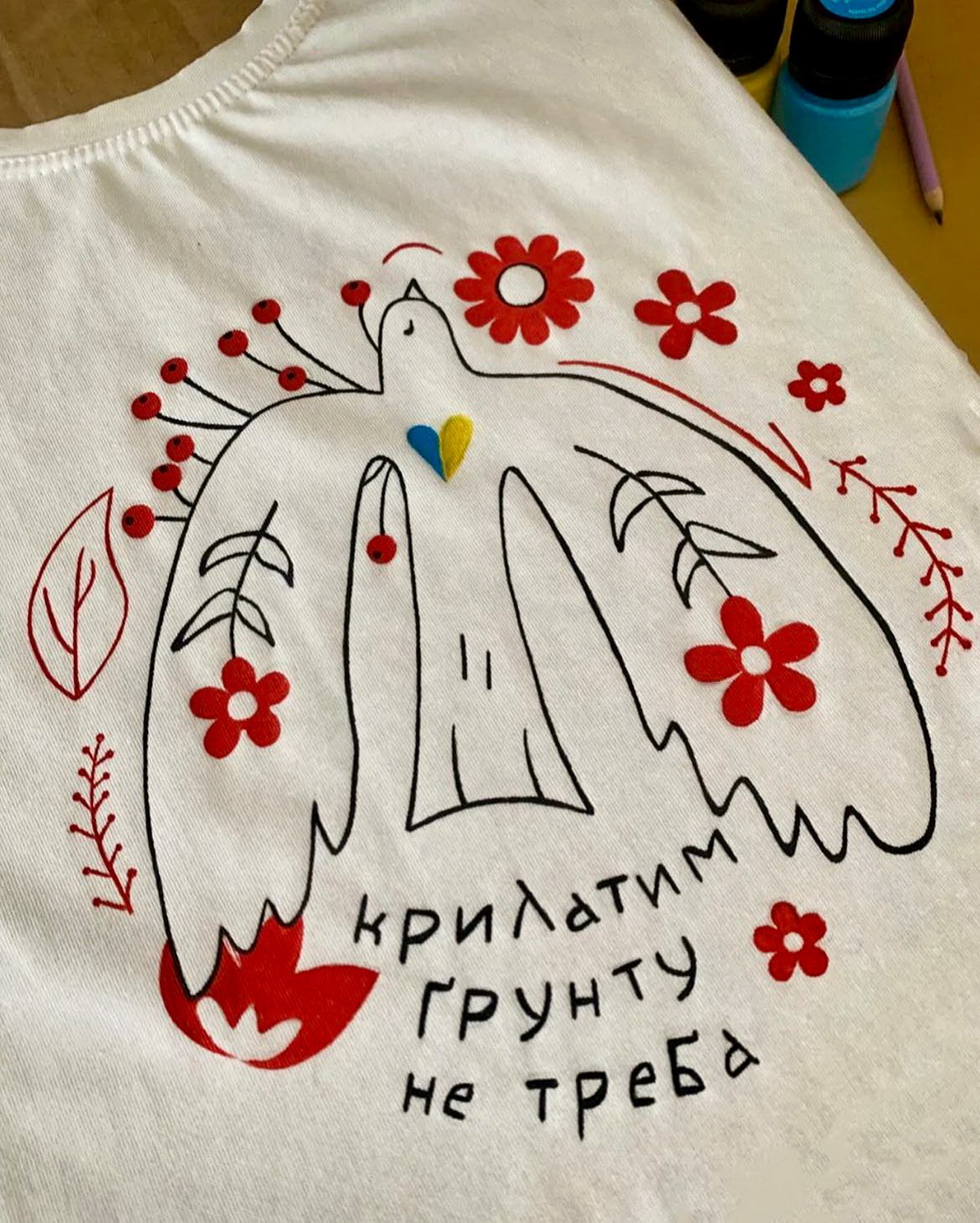 – Протестувала розмальовану футболку на собі, як будуть носитися фарби, – пригадує першу свою роботу майстриня. – І мені це сподобалося, малюнок тримався. До слова, ця футболка і зараз у мене є, і фарба не змилася, хоч скільки разів уже прала. Малюю якісними акриловими фарбами, які призначені саме для розпису по тканині.