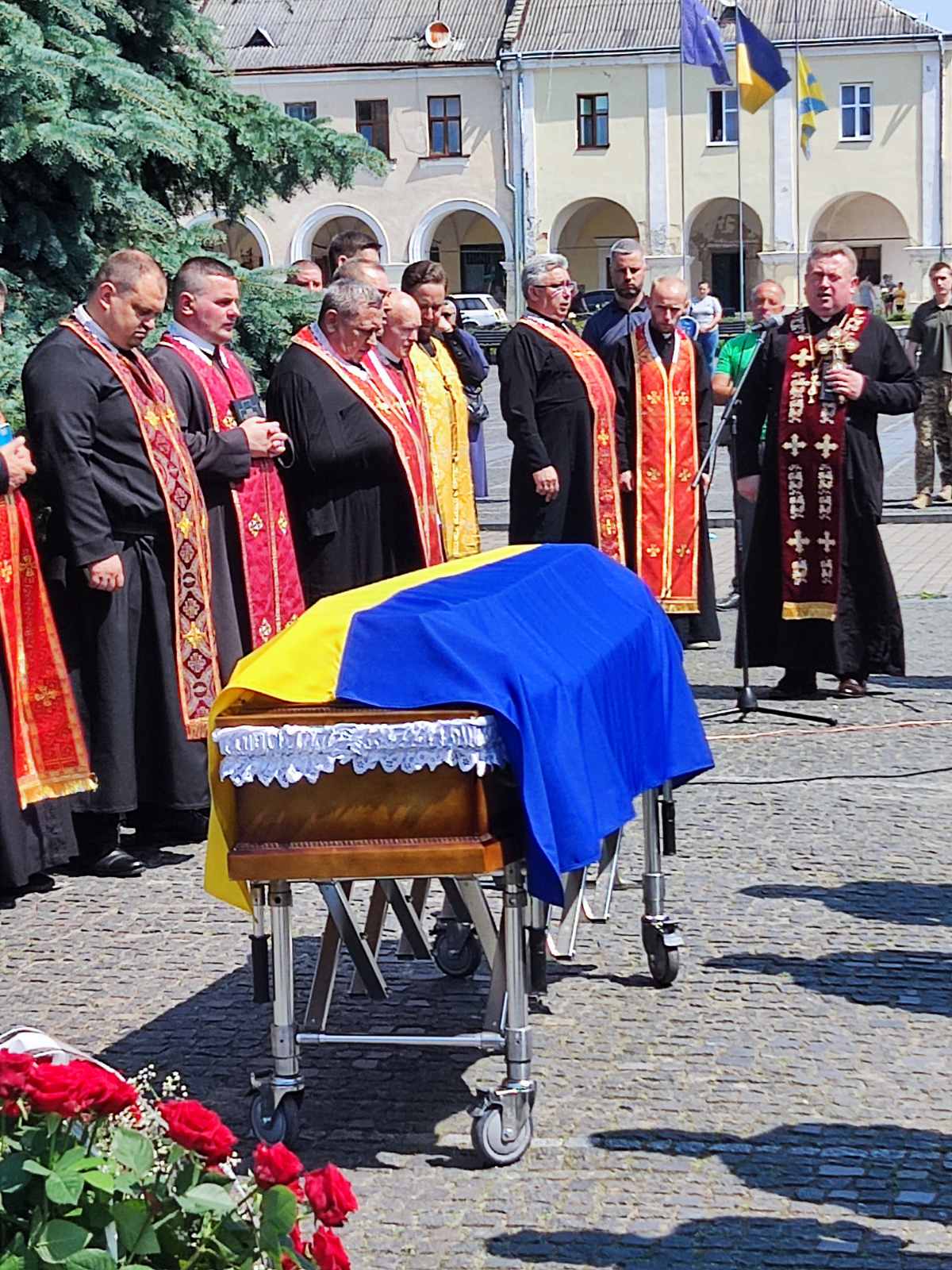 Жовква на Львівщині. На центральній площі напрочуд тихо і спокійно. У нестерпно голубому небі відбиває свої теплі промені сонце. Височіють храми, які, здається, хрестами дотягуються у самісіньке його серце. Рівно дванадцята година дня – про це сповіщає годинник на місцевій ратуші. Цю ідилію порушують звуки сирени. Лунає “Пливе кача” – на площу прямує траурний кортеж із тілом загиблого Героя Олега Омельчука. Тут відбулася церемонія прощання із відважним воїном, який поклав своє життя за Україну.