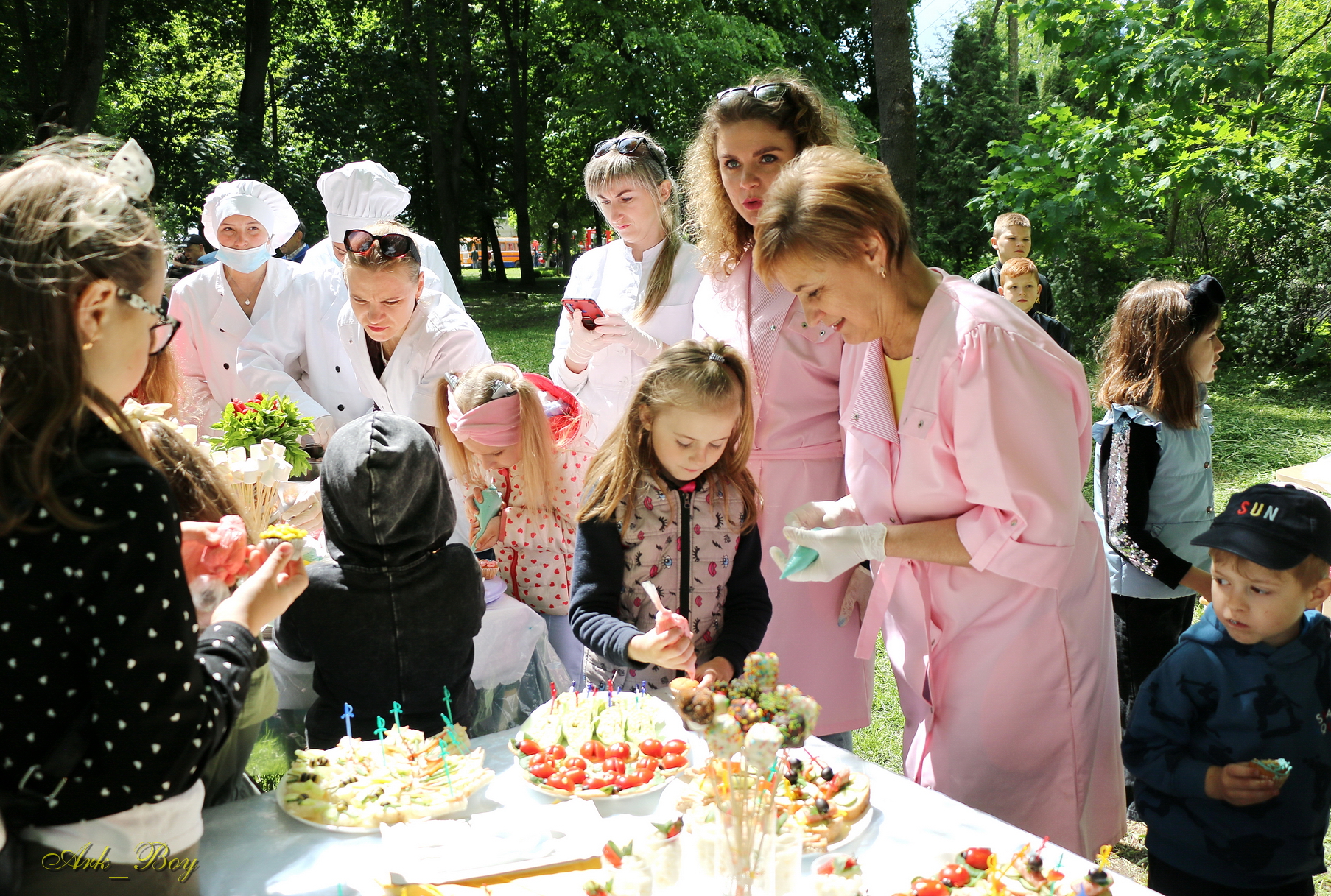 Програма заходів настільки різноманітна, що цікавими локаціями охоплено всю паркову зону. Тут і святковий концерт, де своїми талантами радують самі діти, майстер-класи від керівників гуртків ЦПР.