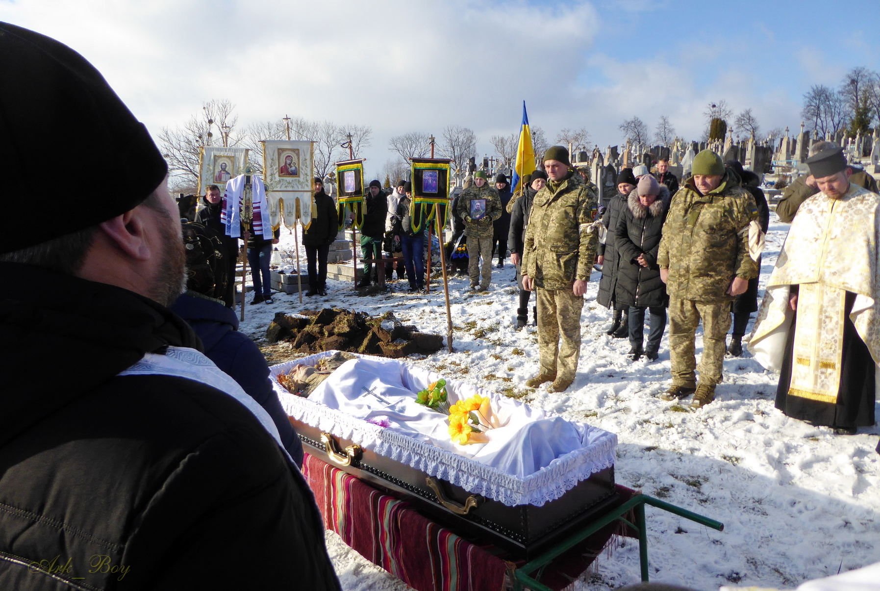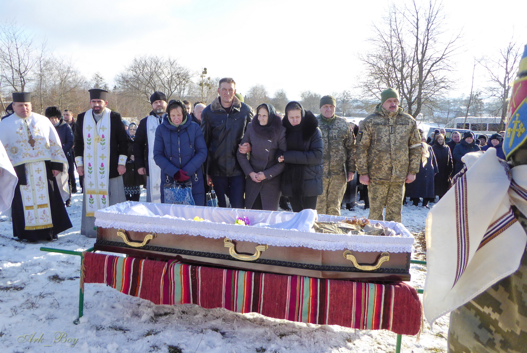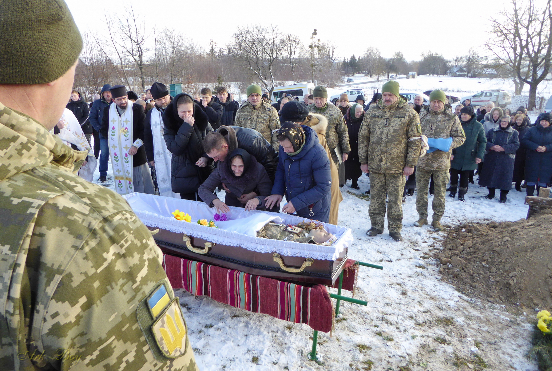 Далі кортеж із загиблим вирушив до батьківської хати. Поховали воїна у рідних Васьківцях.