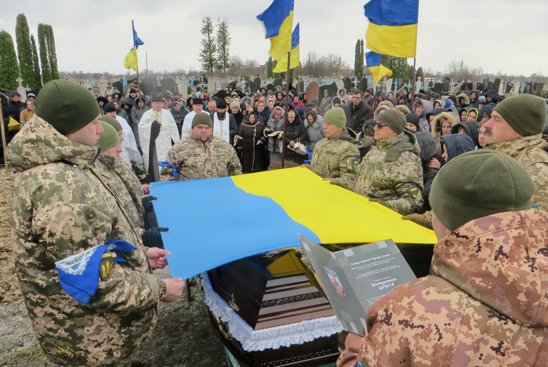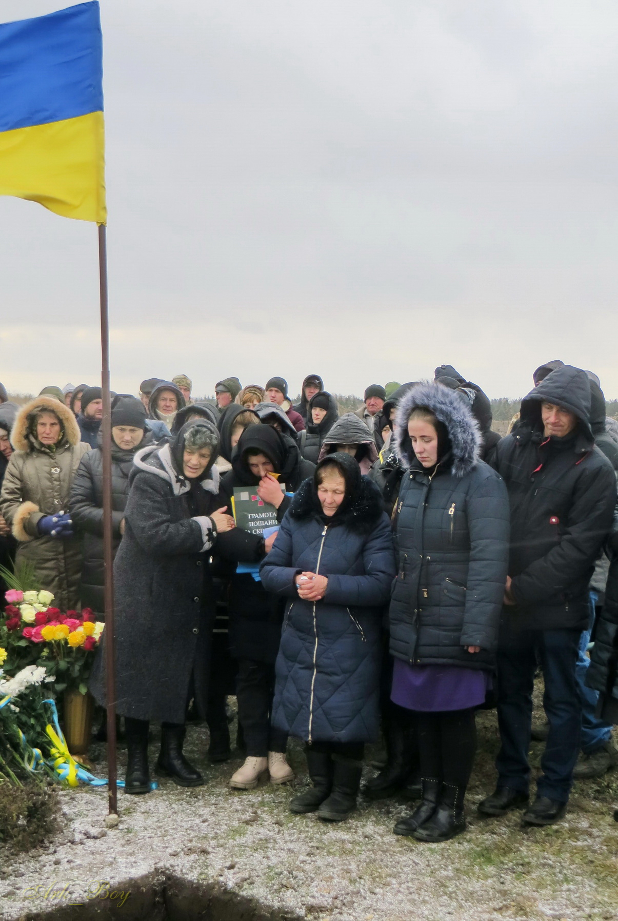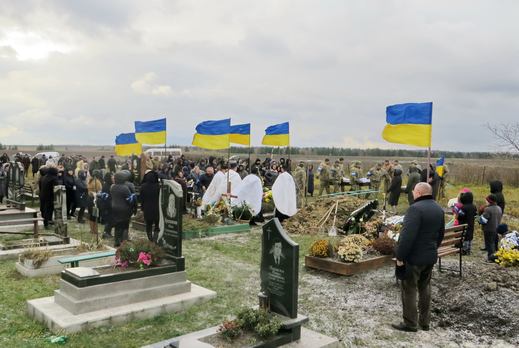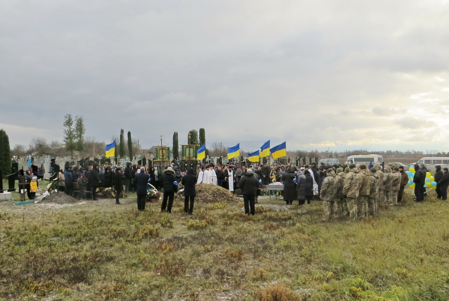 Його останній земний шлях був встелений квітами. Під сумну мелодію військового оркестру, жалобний дзвін, зі сльозами на очах та зі щирою молитвою проводжали Героя до місця вічного спочинку.