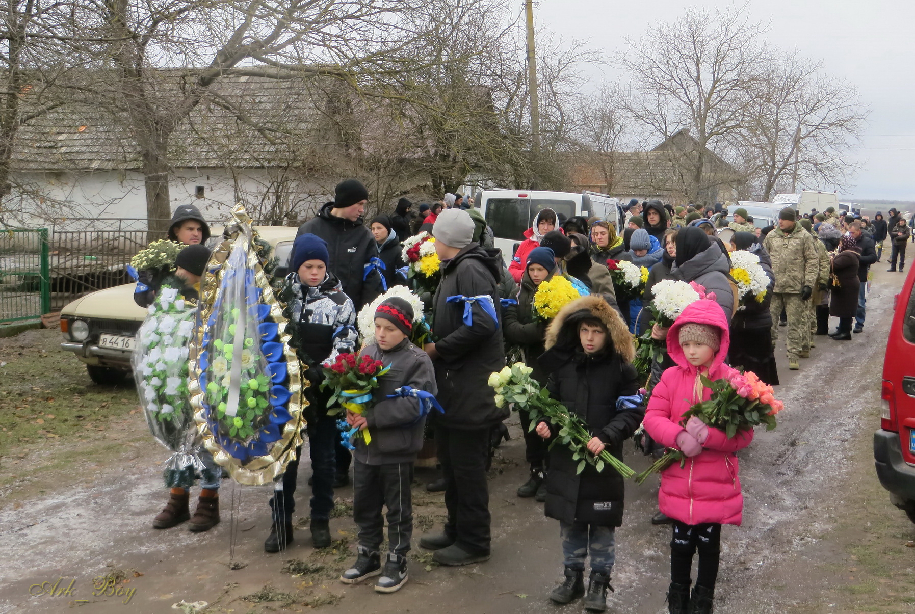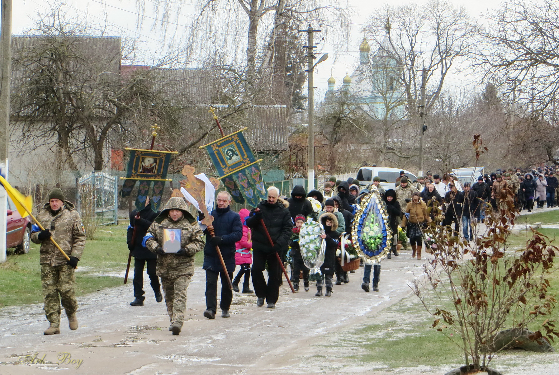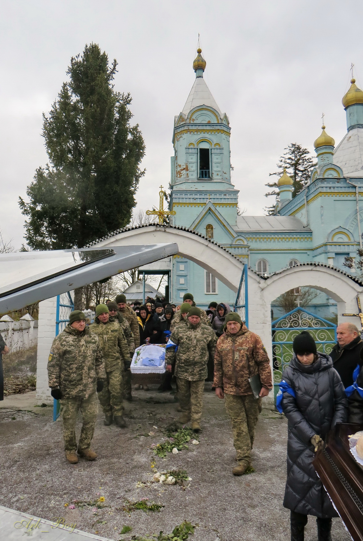 Його останній земний шлях був встелений квітами. Під сумну мелодію військового оркестру, жалобний дзвін, зі сльозами на очах та зі щирою молитвою проводжали Героя до місця вічного спочинку.