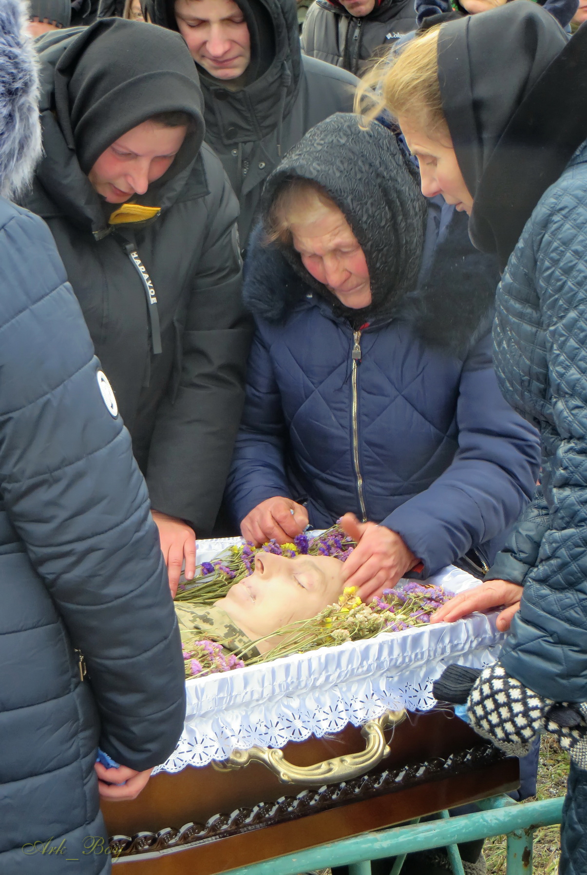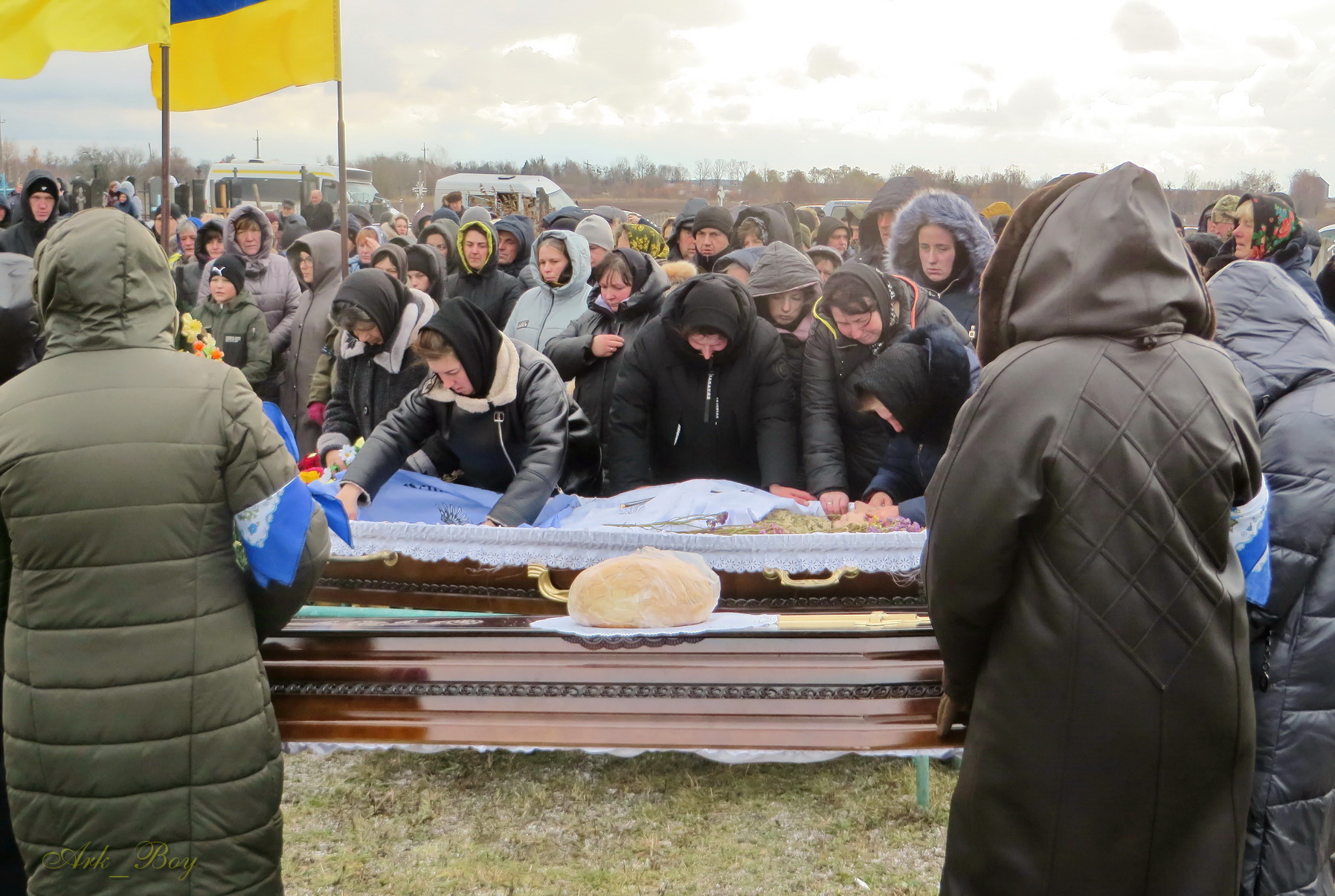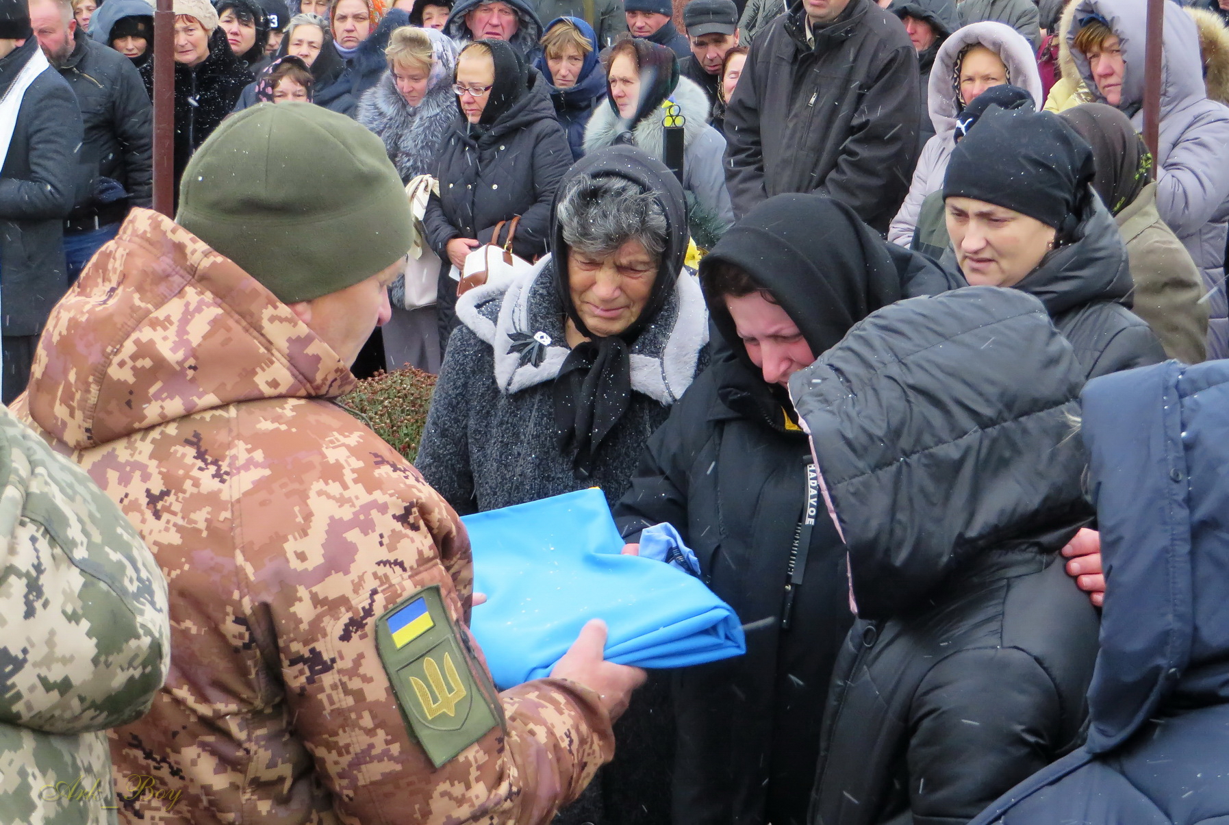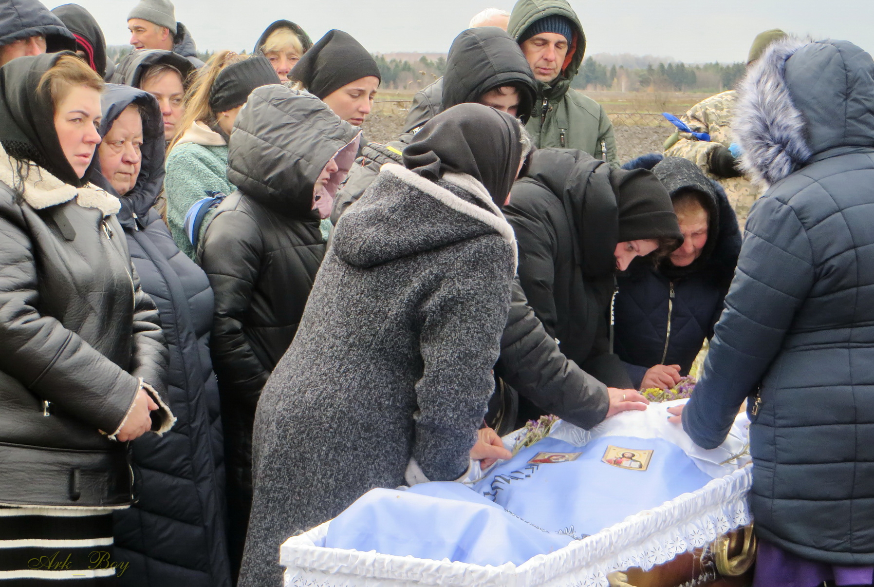 Його останній земний шлях був встелений квітами. Під сумну мелодію військового оркестру, жалобний дзвін, зі сльозами на очах та зі щирою молитвою проводжали Героя до місця вічного спочинку.