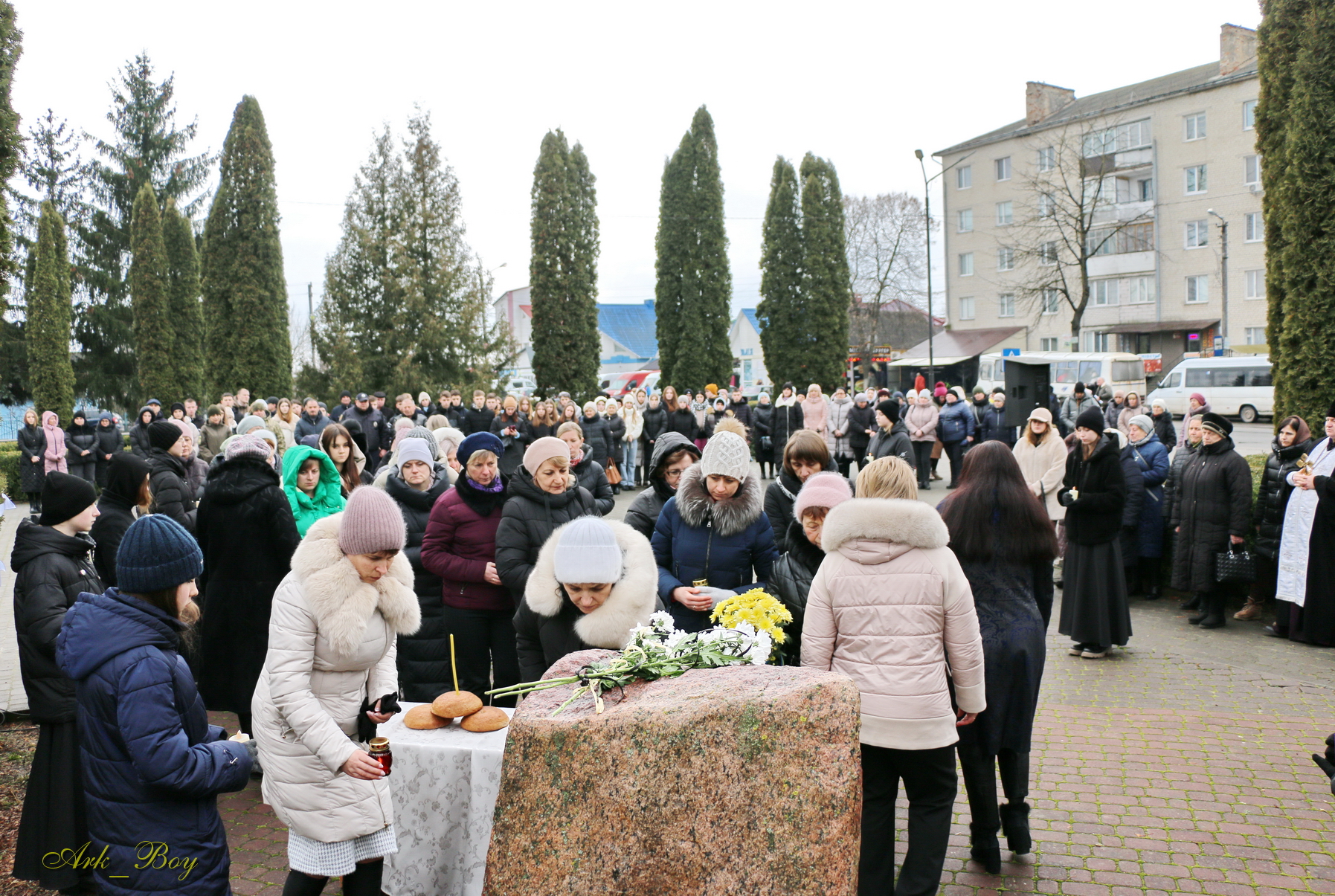 До пам’ятного знаку Героям Небесної Сотні поклали квіти та поставили лампадки, бо у серці України навіки житимуть її найкращі сини, які віддали своє життя за Батьківщину.