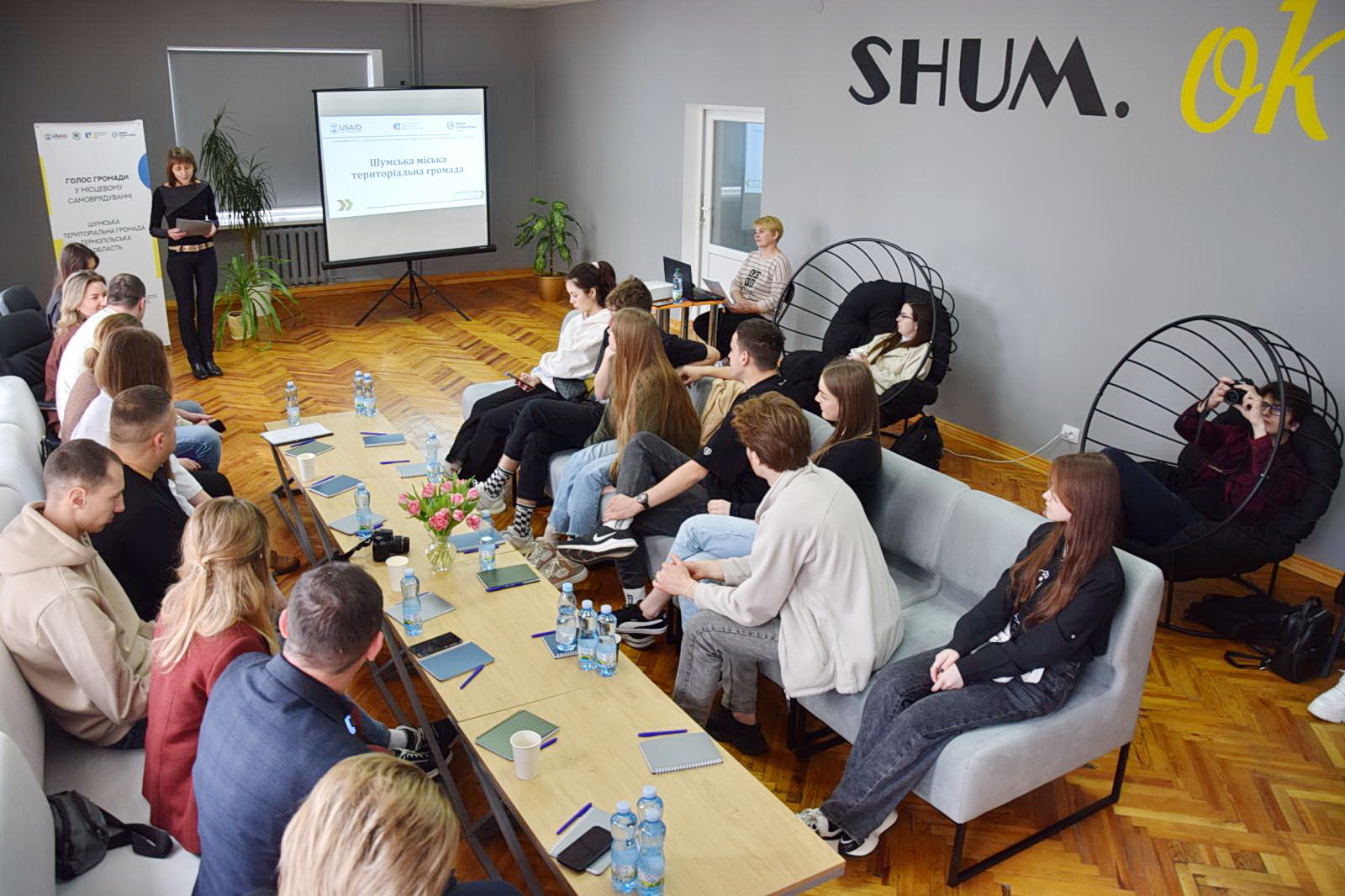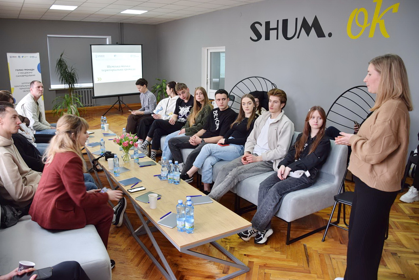 У Молодіжному просторі «Шум. Ок» (проєкт реалізовано завдяки Програмі «DOBRE»), відбулася зустріч з головою Шумської громади Вадимом Боярським та начальником управління освіти, культури, молоді, спорту та туризму Аллою Ніколаєвою. Поспілкувалися про те, як молодь залучена до активного життя громади, про співпрацю з Молодіжною радою.