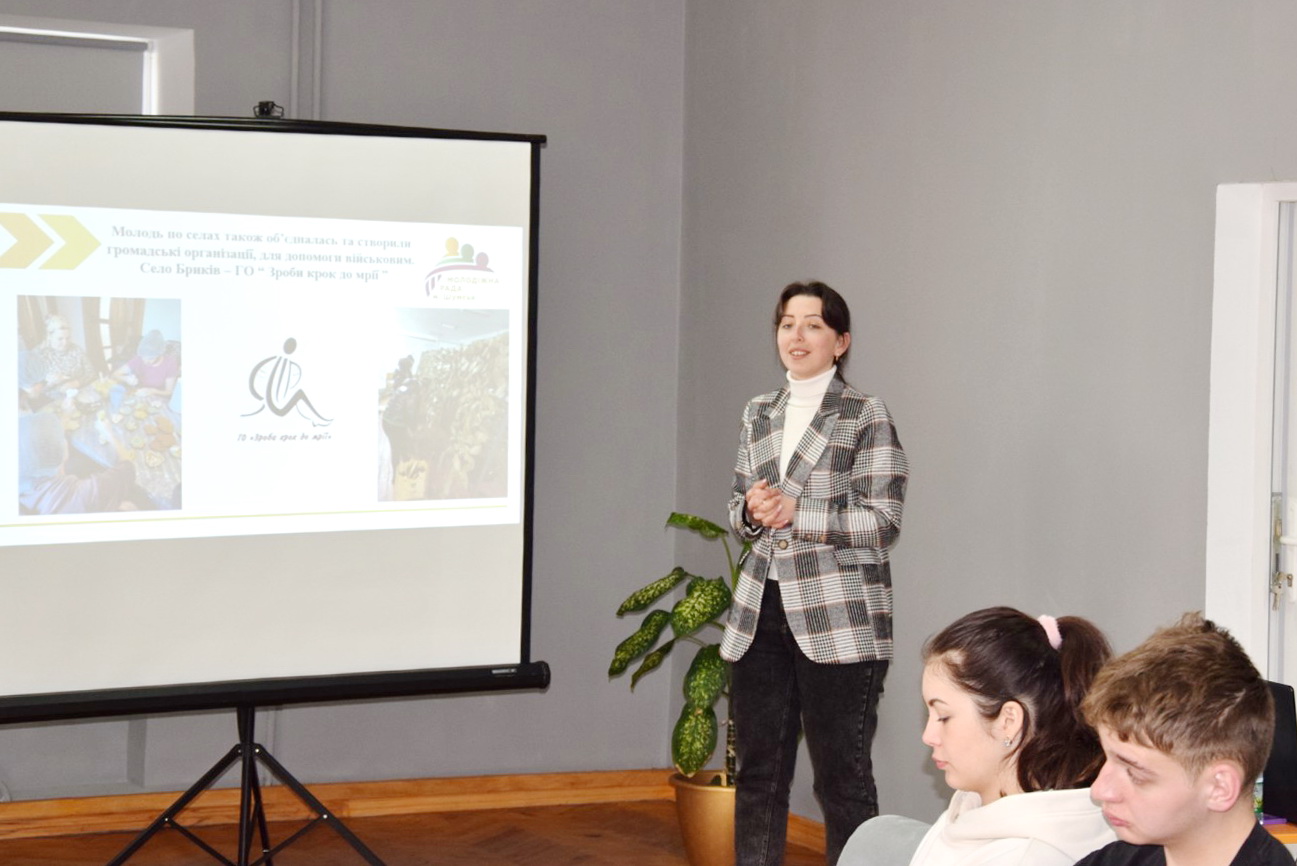 Голова Молодіжної ради Анастасія Соловей презентувала проєкти, які вже втілені у життя, та поділилася ідеями, які мають намір реалізувати на території Шумської громади.