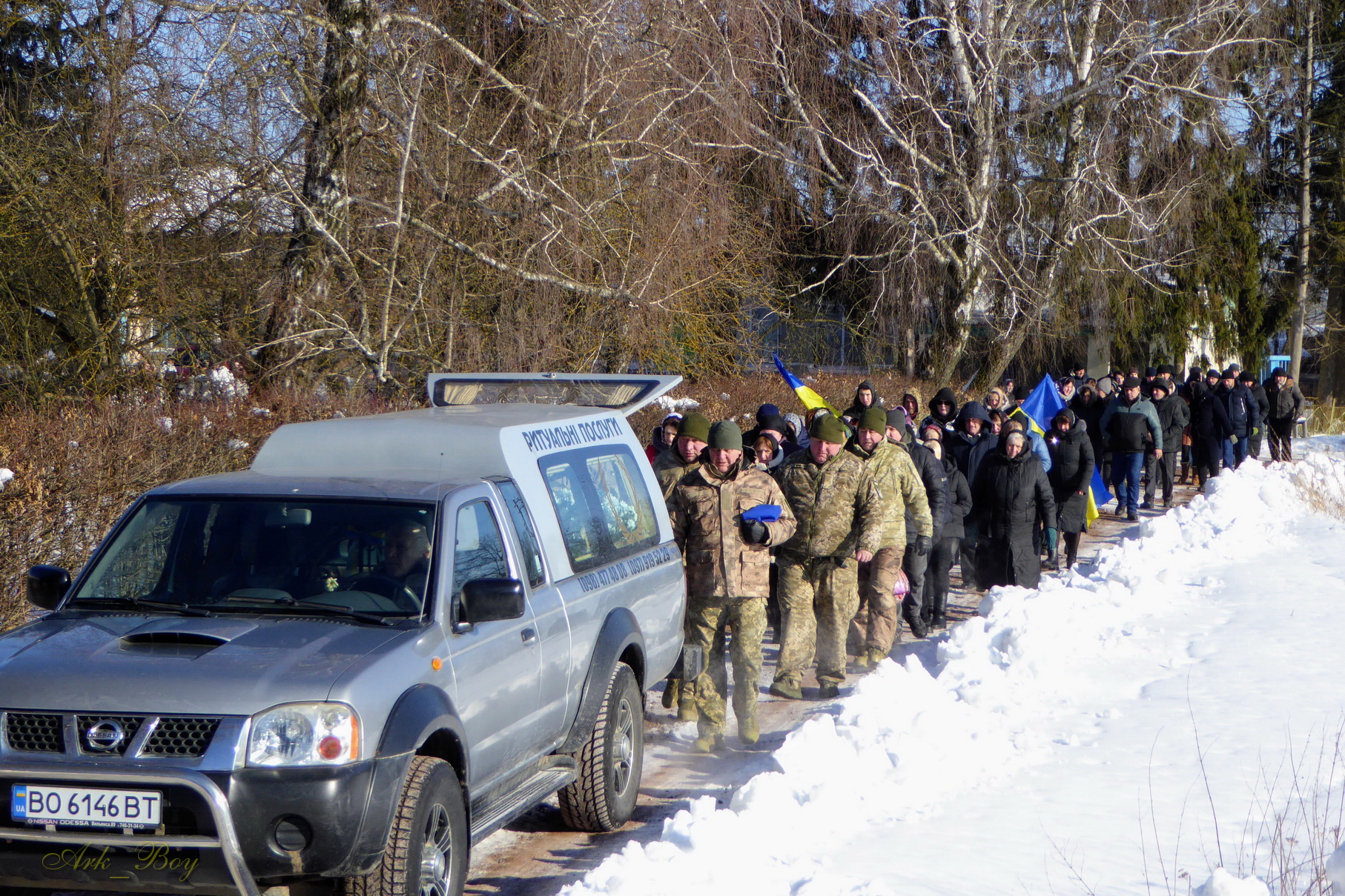 Шумська громада зустріла свого Героя навколішки, утворивши живий коридор шани. На площі Героїв Майдану священнослужителі відправили панахиду та разом із присутніми помолилися за упокій душі полеглого воїна.