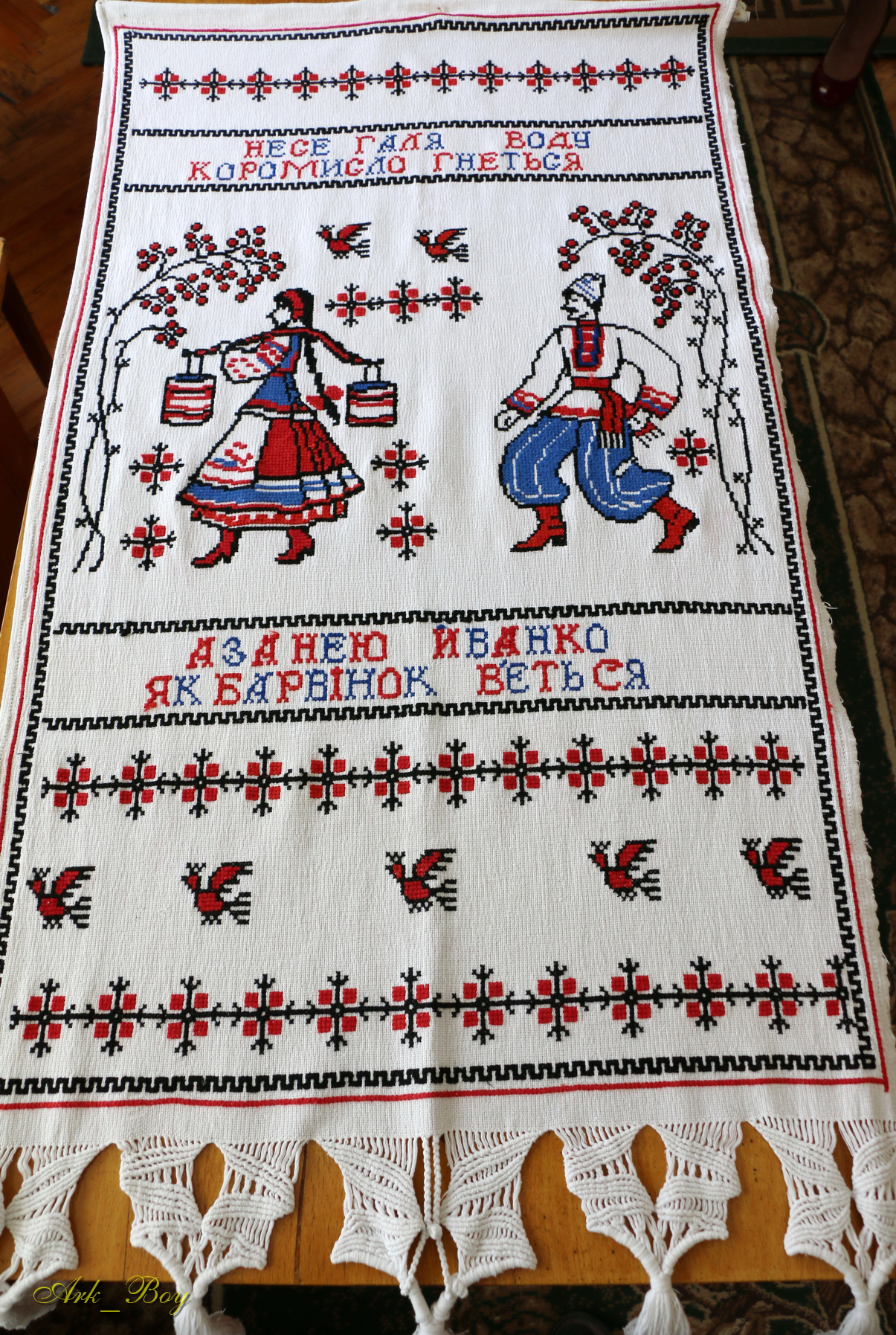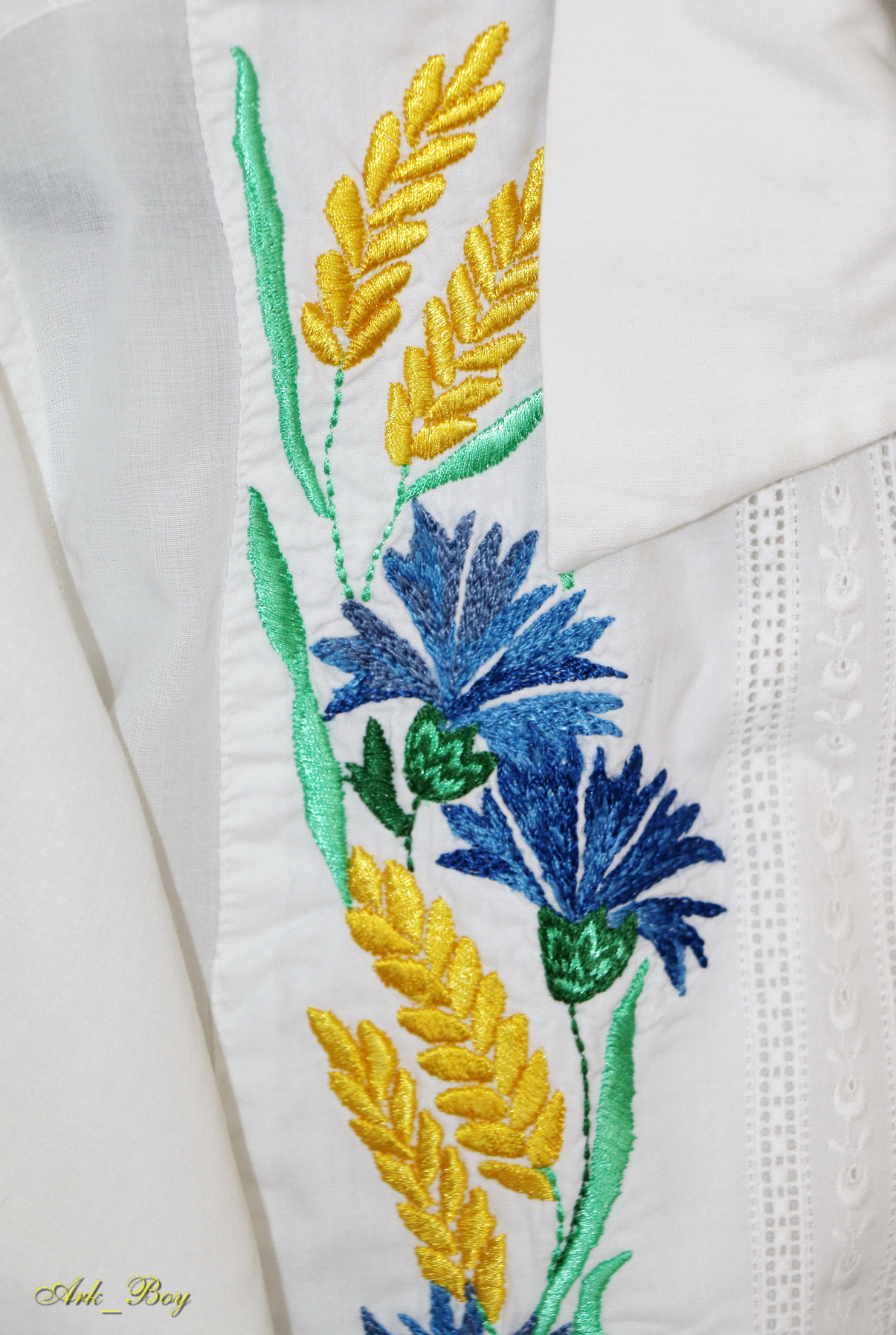 У доробку майстрині є вишитий Державний Гімн України. Та її найулюбленішим витвором є костюм на випускний для донечки Софійки.
