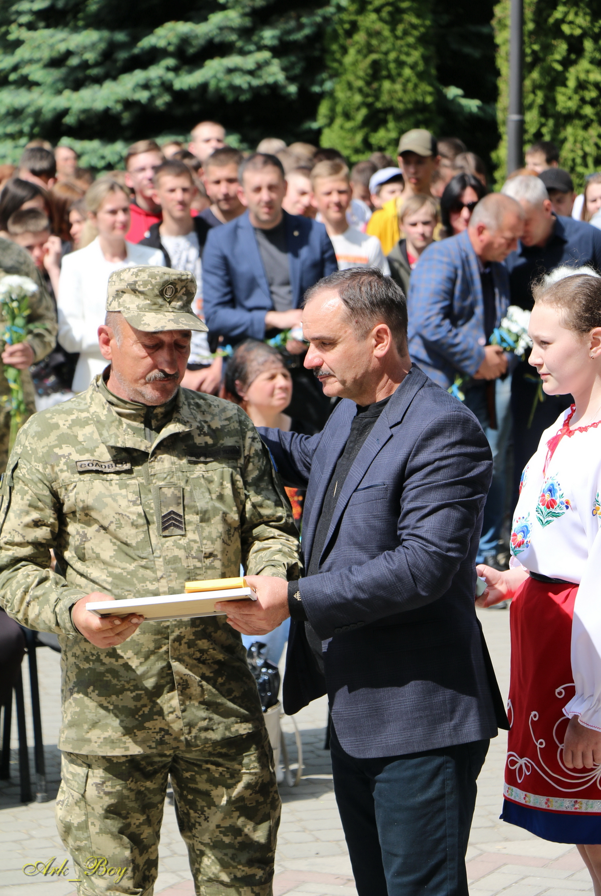 Вадим Боярський зачитав лист-подяку Петру Колеснику, яка надійшла із військової частини, де зараз проходить службу наш земляк, і вручили його батькам воїна за те, що виховали та підтримують гідного громадянина і патріота нашої Батьківщини. Військовослужбовець чесно та сумлінно виконує свій обов’язок із захисту суверенітету та територіальної цілісності України.