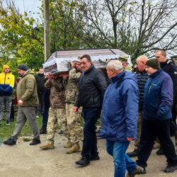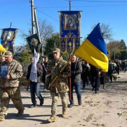 Живим коридором, на колінах, зі сльозами на очах зустріла Великодедеркальська громада свого захисника, солдата Руслана Сергеєва, щоб віддати останню шану Герою.