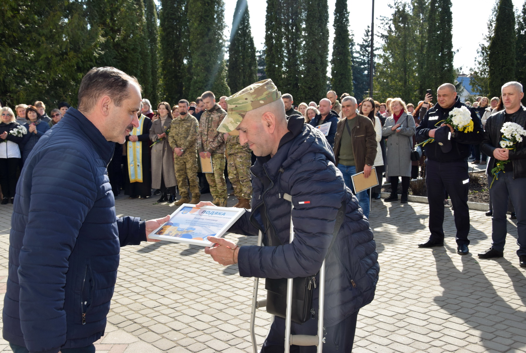 – Сьогодні ми зібралися, аби подякувати кожному військовому України, – зазначив під час виступу міський голова Вадим Боярський. – Сьогодні добровольці – це військові, які зі зброєю у руках захищають український народ. Сьогодні добровольці – це ті військові, які забезпечують інші бойові завдання для забезпечення діяльності наших військ бойових завдань. Сьогодні добровольці – це ті волонтери, які добровільно волонтерять, допомагають Збройним силам України і всім тим, хто бере участь у борні. Сьогодні добровольці – це ті люди, священники, які у молитві моляться до Бога за захист нашої країни. Сьогодні ми дякуємо всім вам. Також вшановуємо пам’ять загиблих, молимося за повернення полонених, віримо у те, що безвісти зниклі повернуться до своїх сімей.