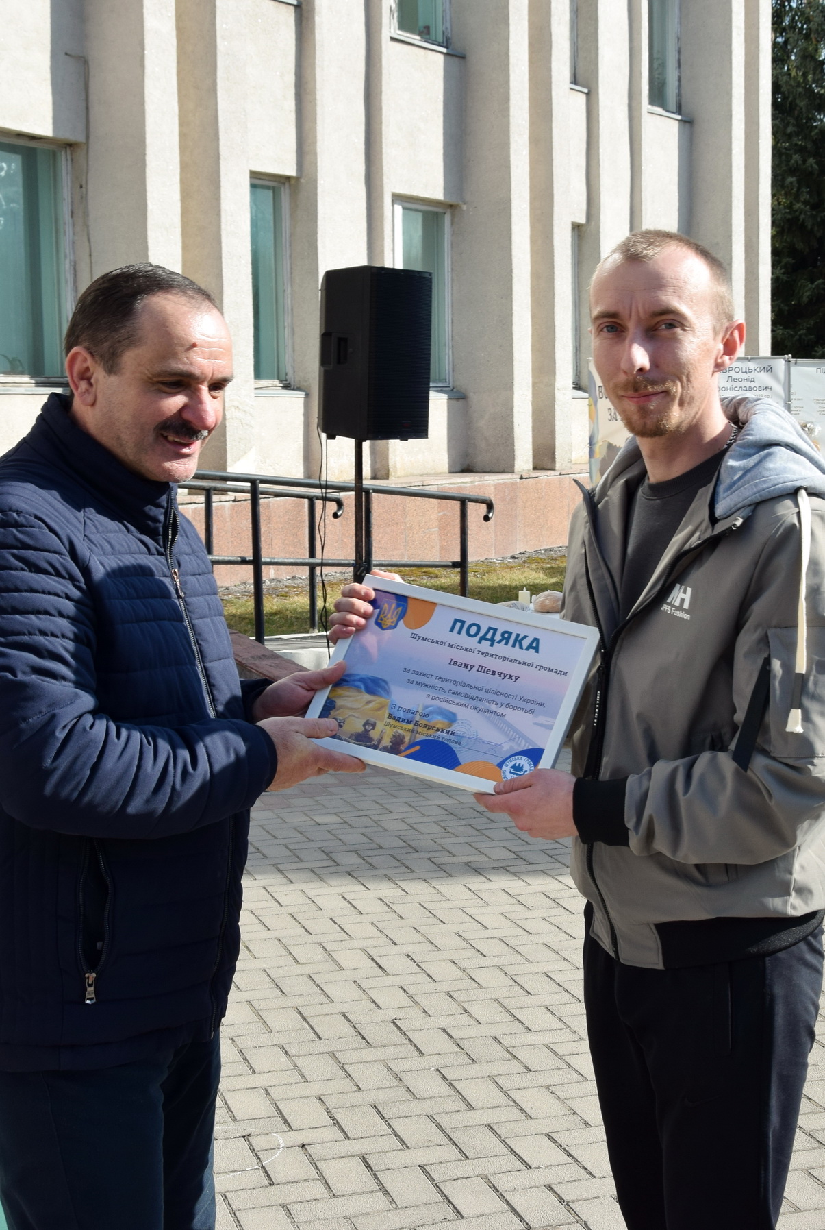 Подяки від Шумської територіальної громади за захист територіальної цілісності України, за мужність, самовідданість у боротьбі з російським окупантом вручив міський голова Вадим Боярський Володимиру Маняку, Сергію Волкову, Василю Кравчуку, Тарасу Бережному, Івану Лукащуку, Олександру Супінському, Василю Мельнику, Ярославу Зеленюку, Петру Колеснику, Андрію Кляшторному, Івану Шевчуку, Віктору Івашенюку, Юрію Мельничуку, Богдану Гапонюку, Андрію Стецію, Віталію Щукіну, Валерію Киричуку, Михайлу Приймасу, Василю Подолянюку, Володимиру Андросюку.