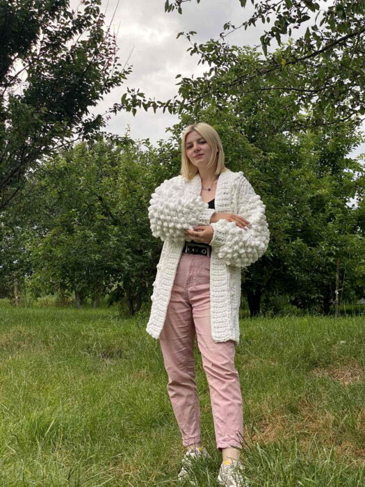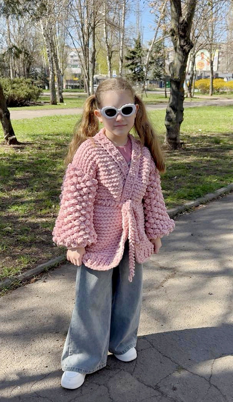 – Моя подруга замовила у мене уже два кардигани, – розповідає Софія. – Вона каже, що їй у них тепло та затишно. Моя мама – чотири вироби, вона – найбільший спонсор. Каже, що у неї мають бути вироби в усіх кольорах і різних розмірів, бо ж її дитина в’яже кардигани (сміється – авт.).