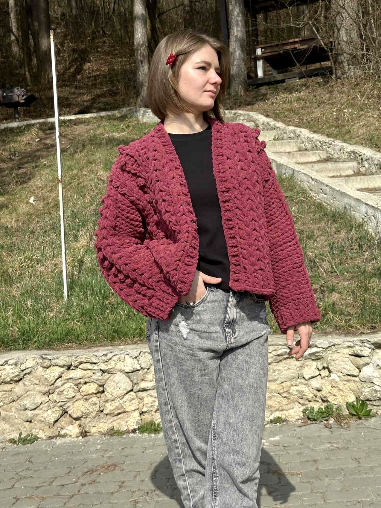 Та по-справжньому своє захоплення почала розвивати відтоді, як у соцмережі Софія натрапила на кардигани. Купила навчальний базовий курс. А першою замовницею стала сестра. Це було два роки тому.