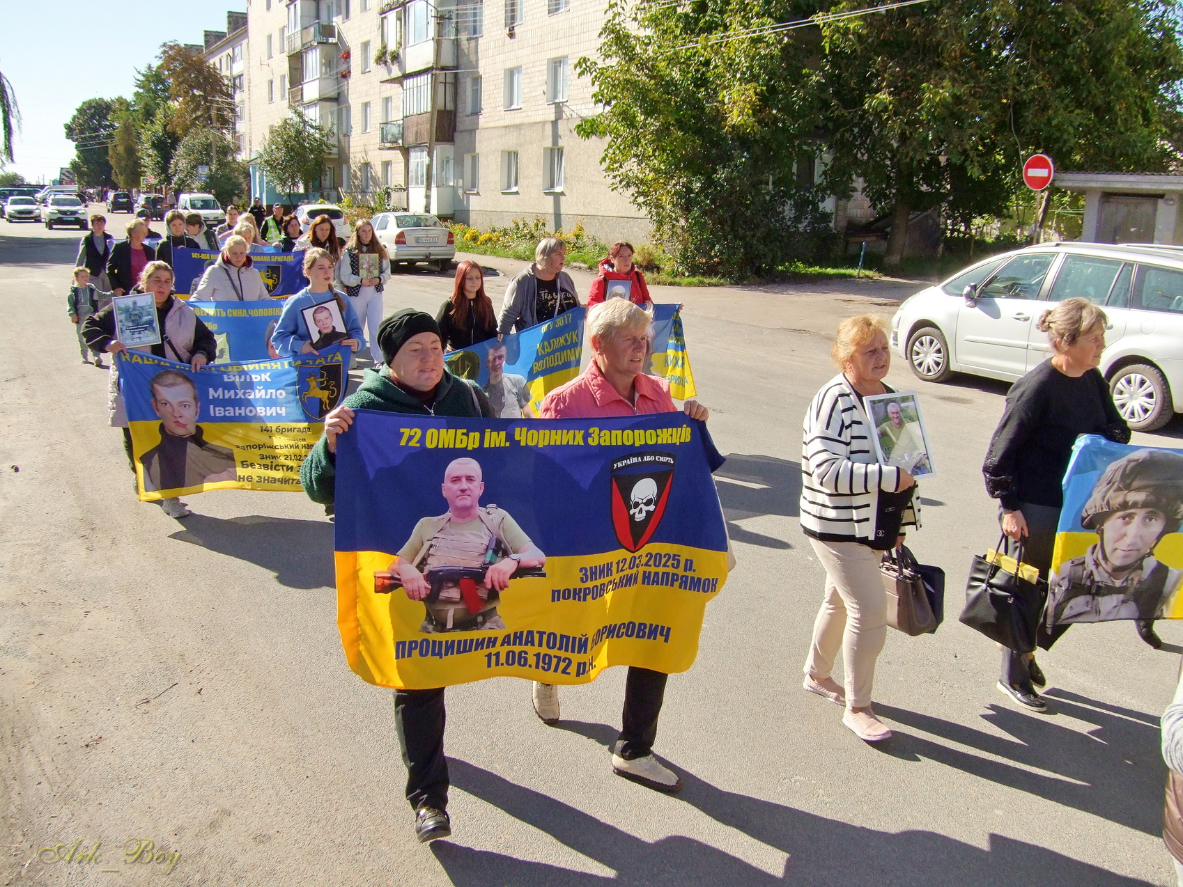 Закінчилася акція молитвою у храмі Преображення Господнього м.Шумськ ПЦУ та мирною ходою вулицями Шумська – з плакатами, портретами рідних та вірою близьких у повернення додому військових, які зникли безвісти або потрапили у полон.