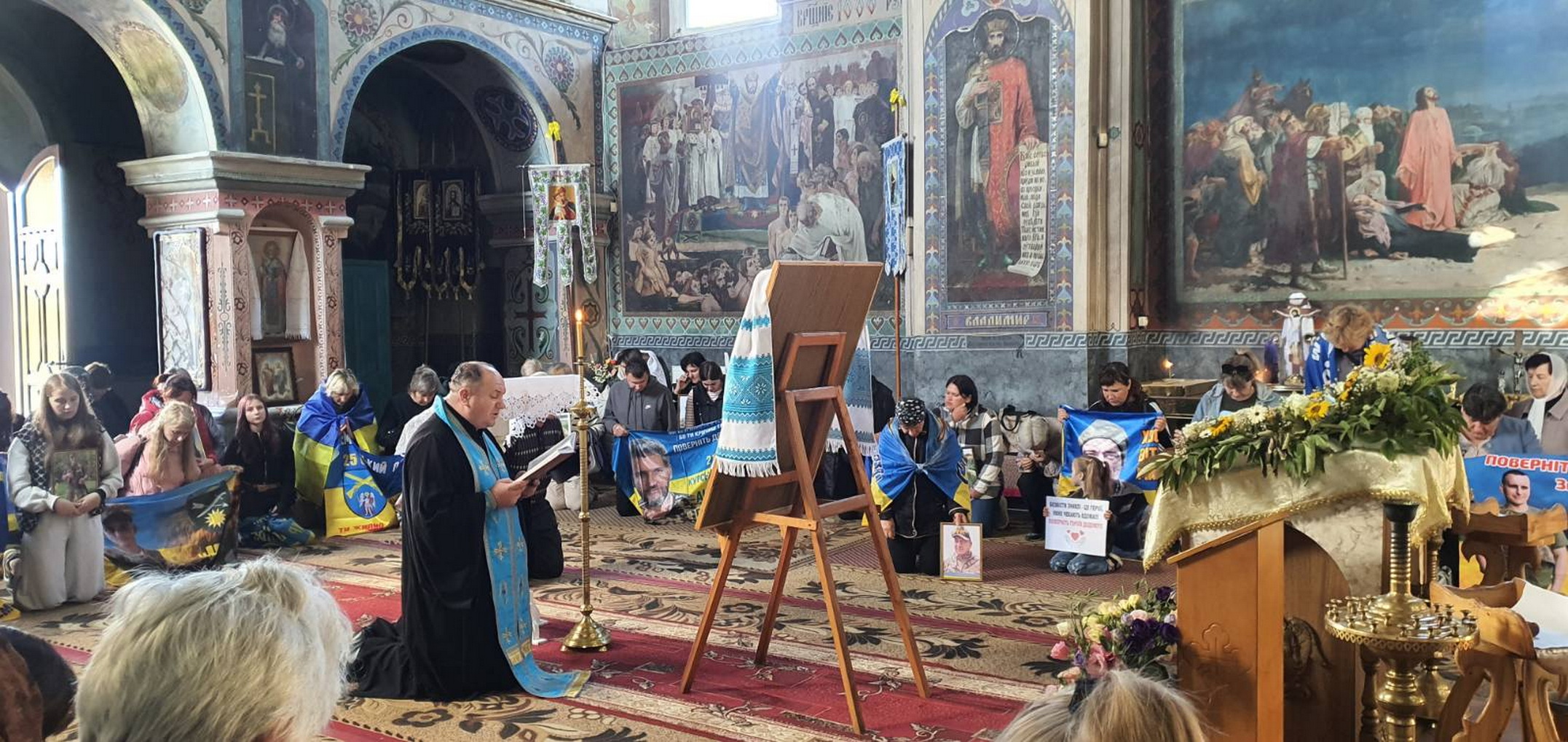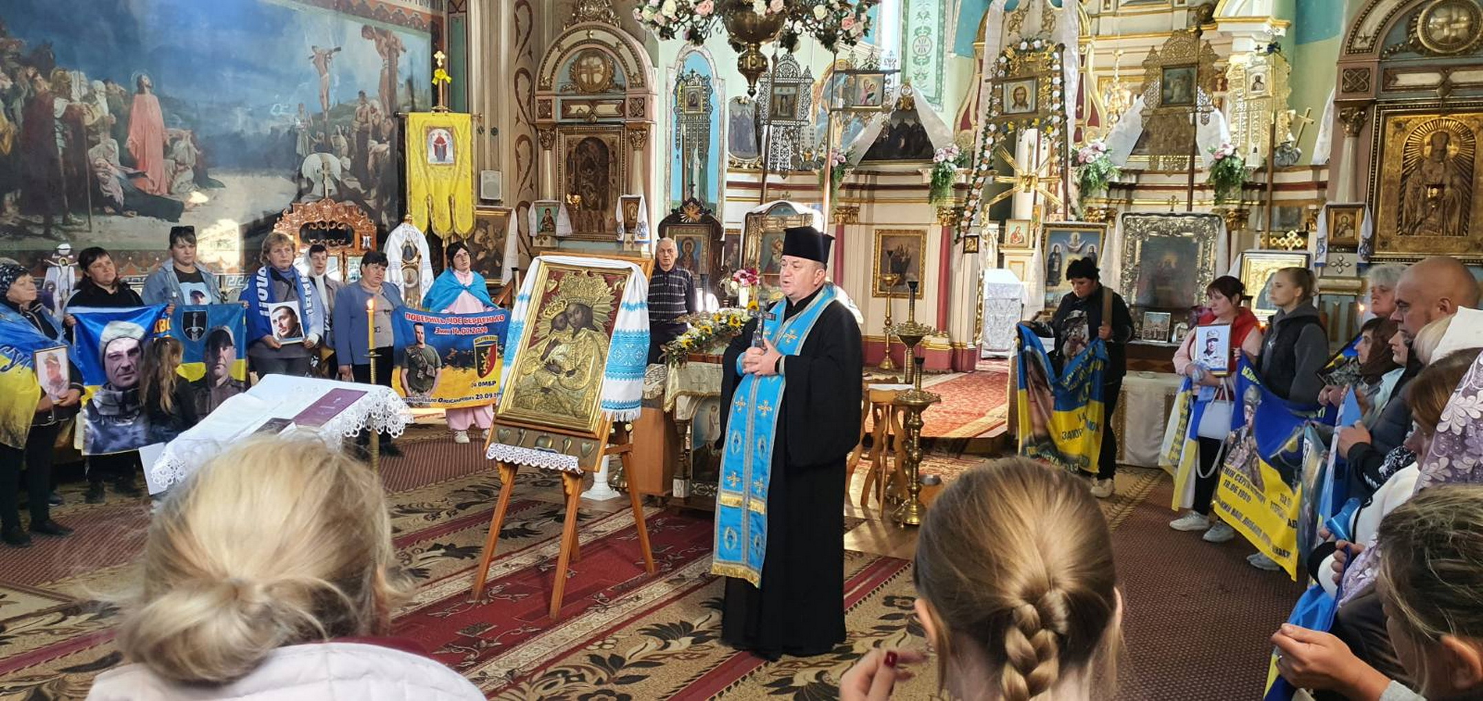 Священнослужителі отець Миколай Бабій (ПЦУ) та о.Тарас Громяк (УГКЦ) закликали рідних молитися до Бога, покладатися на Всевишнього, бо тільки він може повернути воїнів, яких вони чекають.