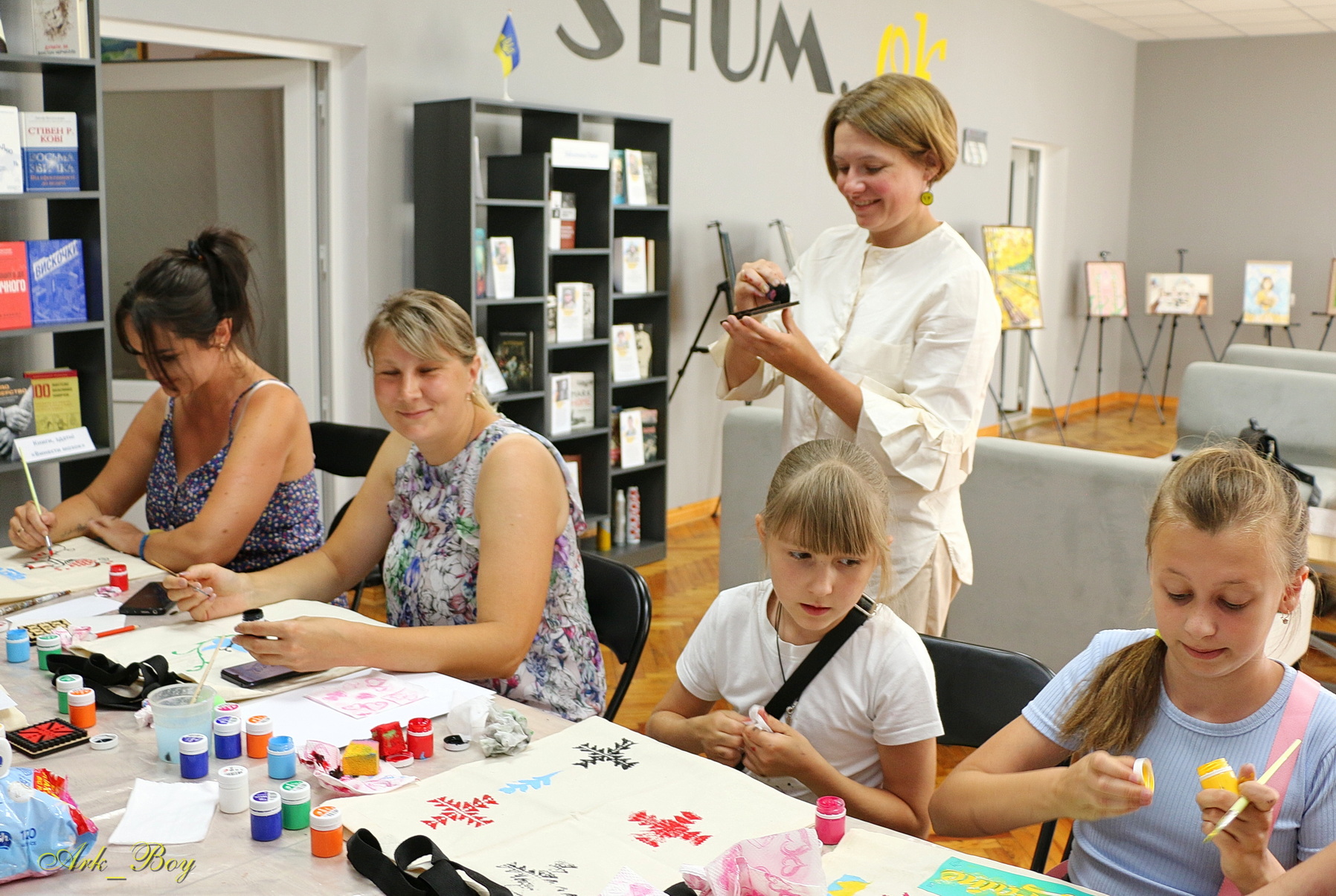 З нагоди Дня молоді у бібліотеці відбулися два майстер-класи – флюїд-арт та розпис екосумок. А ще тут можна переглянути молодіжний фільм. Крім того, протягом дня діяла художня виставка “Моя Україна очима молоді”.