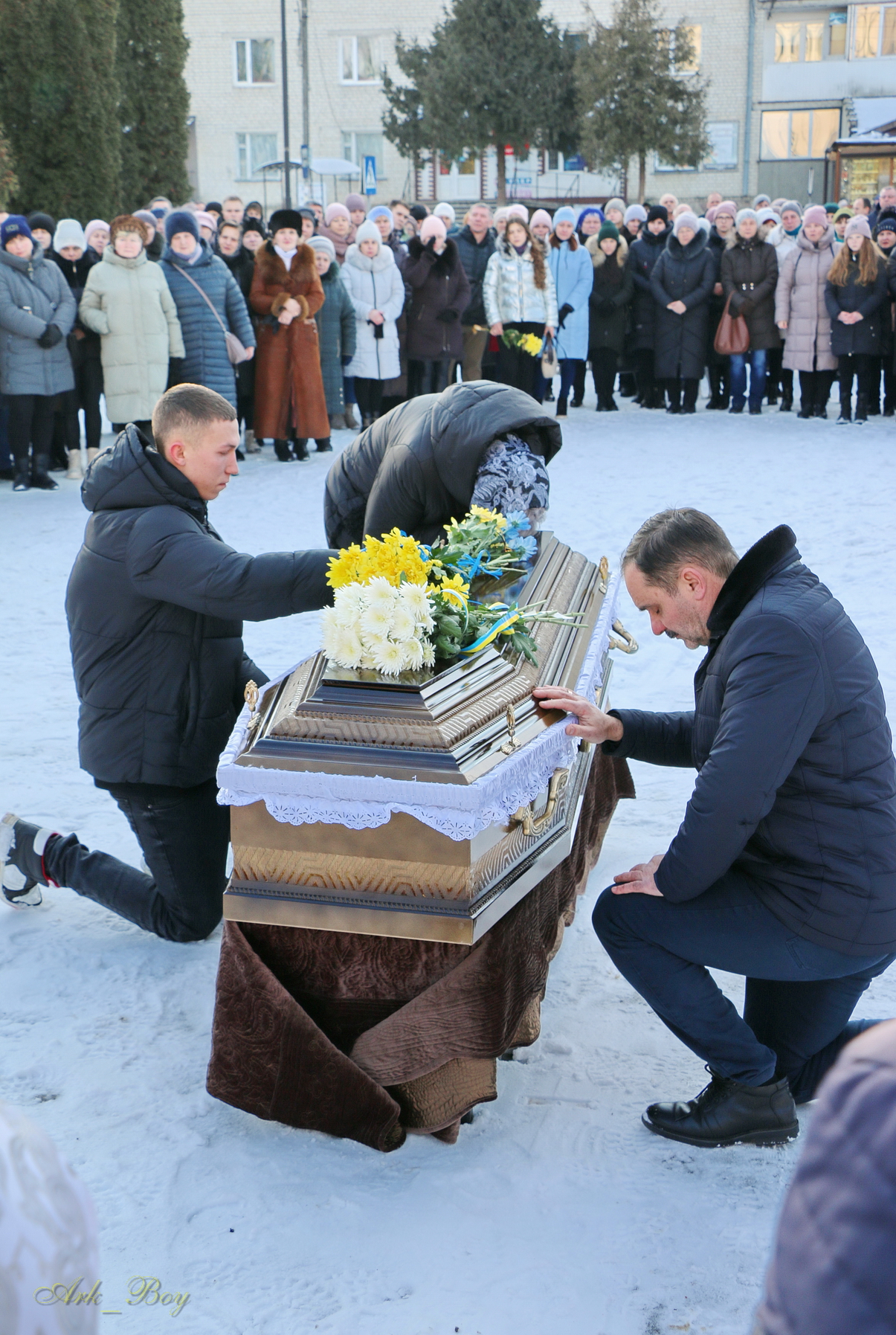 Віддати останню шану Герою прийшли рідні, друзі, сусіди, представники влади та мешканці громади. Низько схиливши голови та ставши на коліна, зустрічали військового живим коридором.