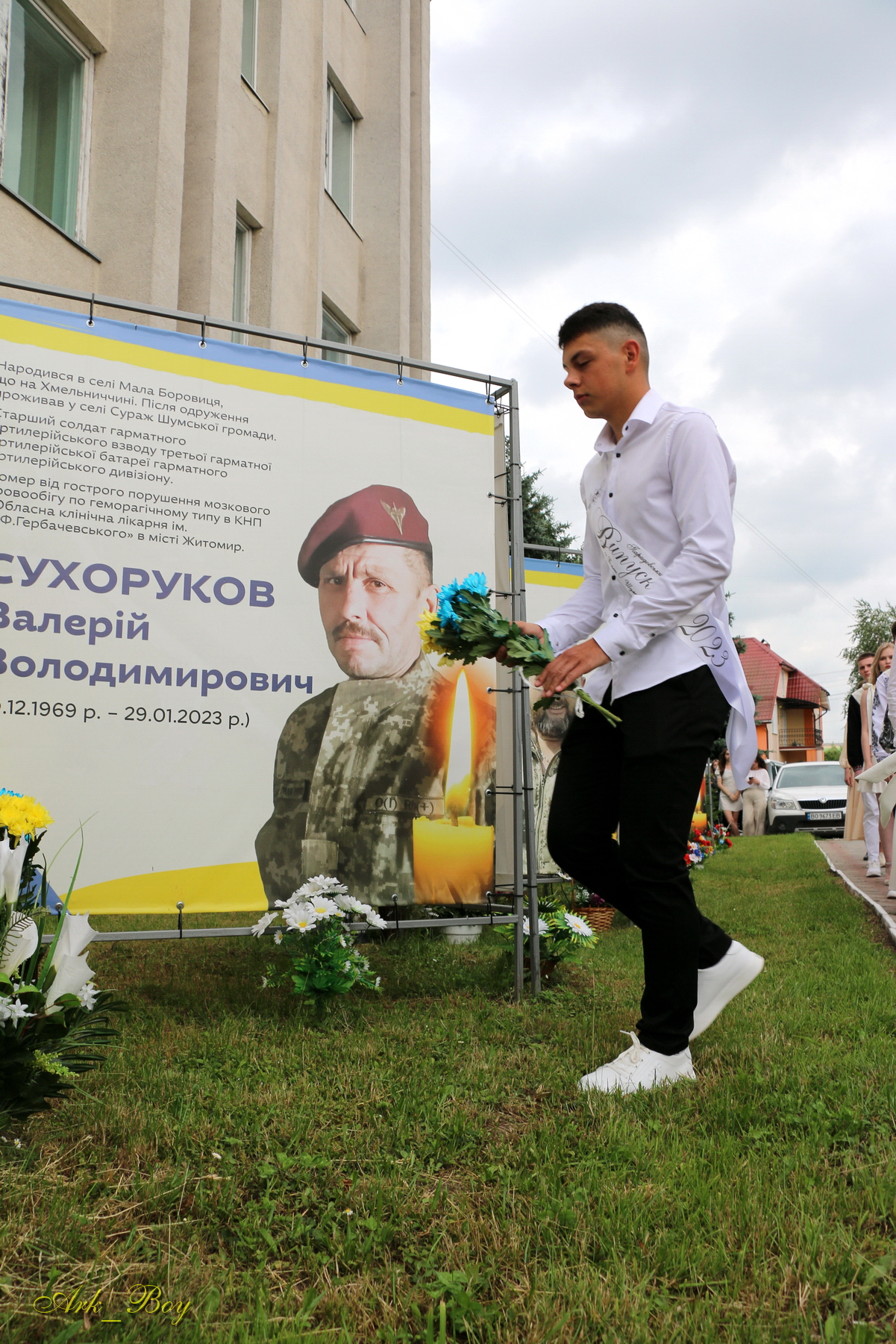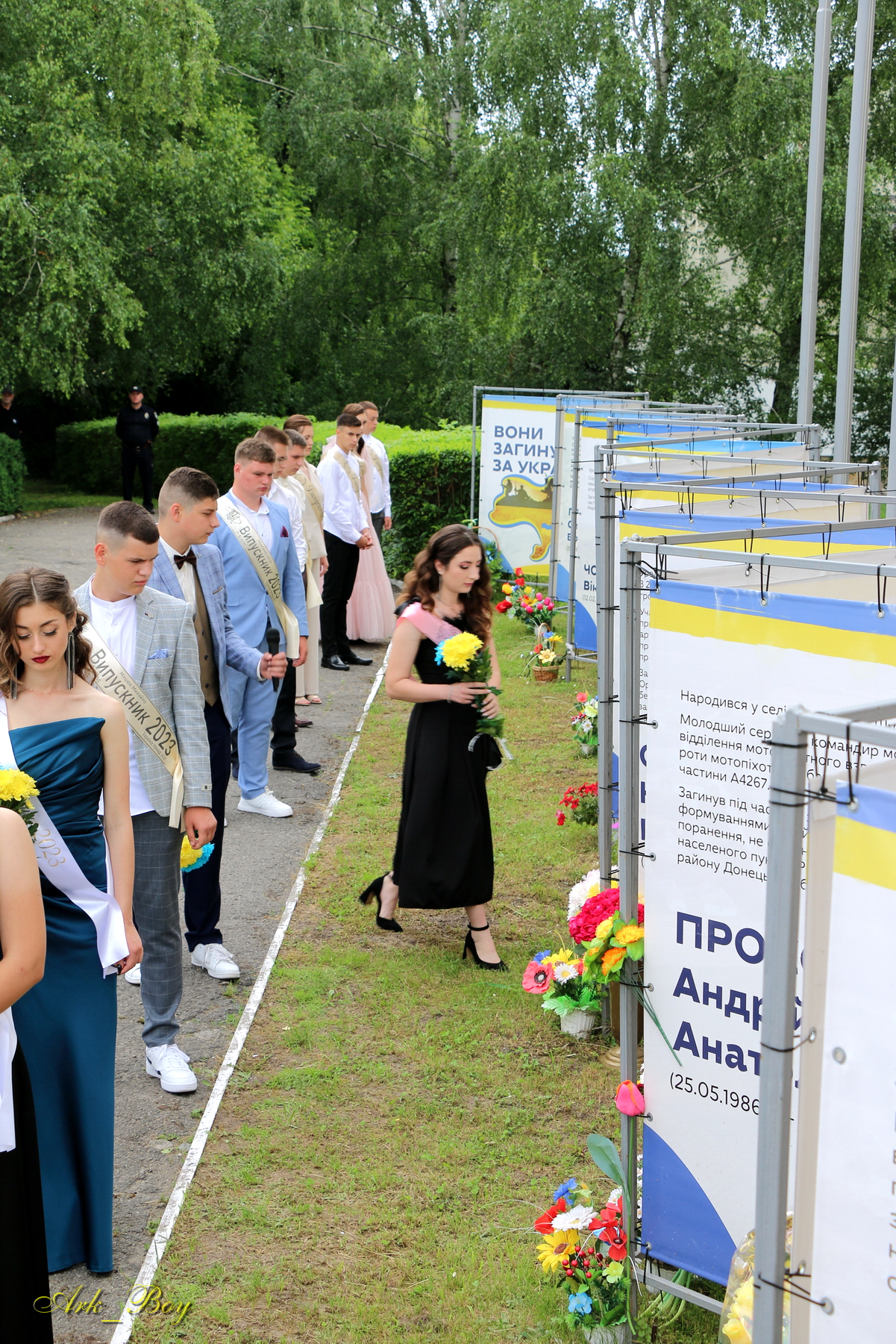 Біля Алеї пам’яті хвилиною мовчання вшанували пам’ять загиблих воїнів громади та усіх українців, які віддали своє життя за час війни. Випускники поклали квіти у знак вдячності.