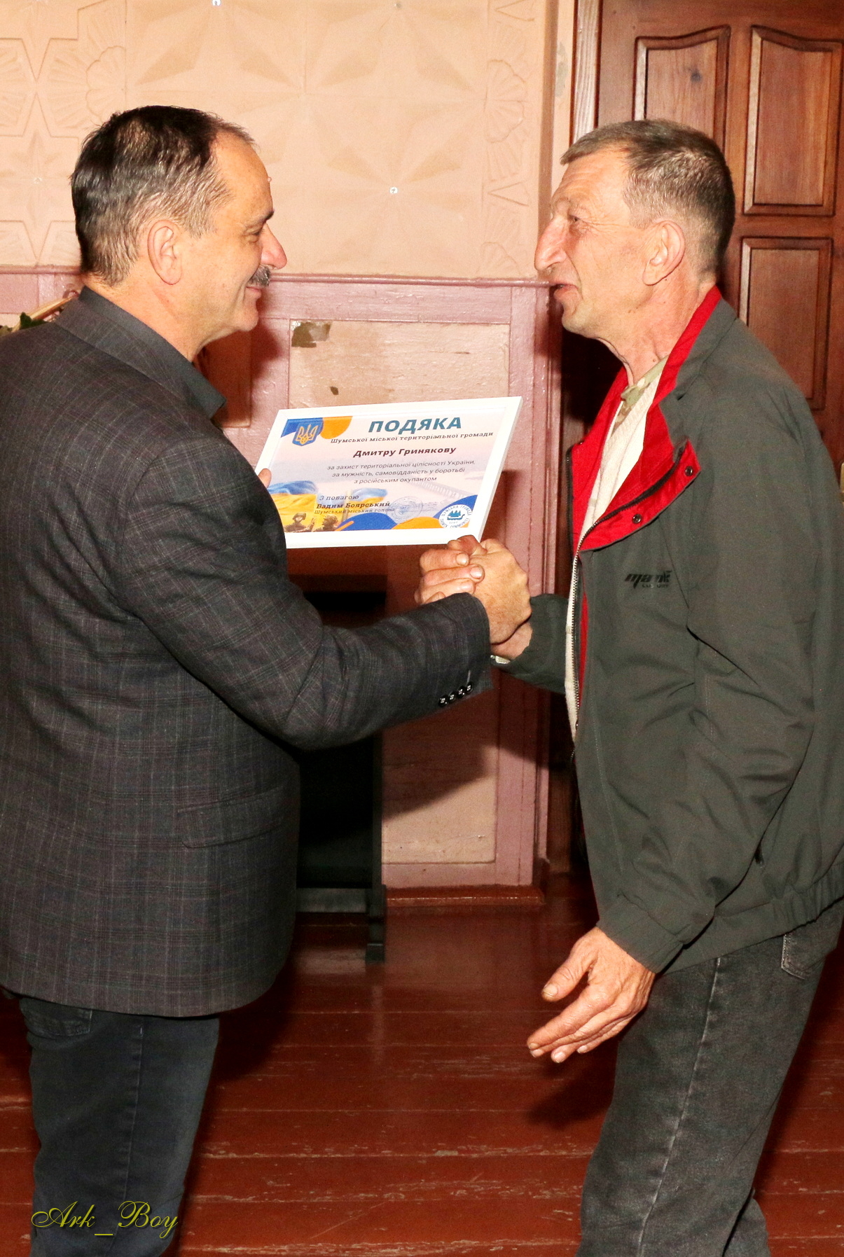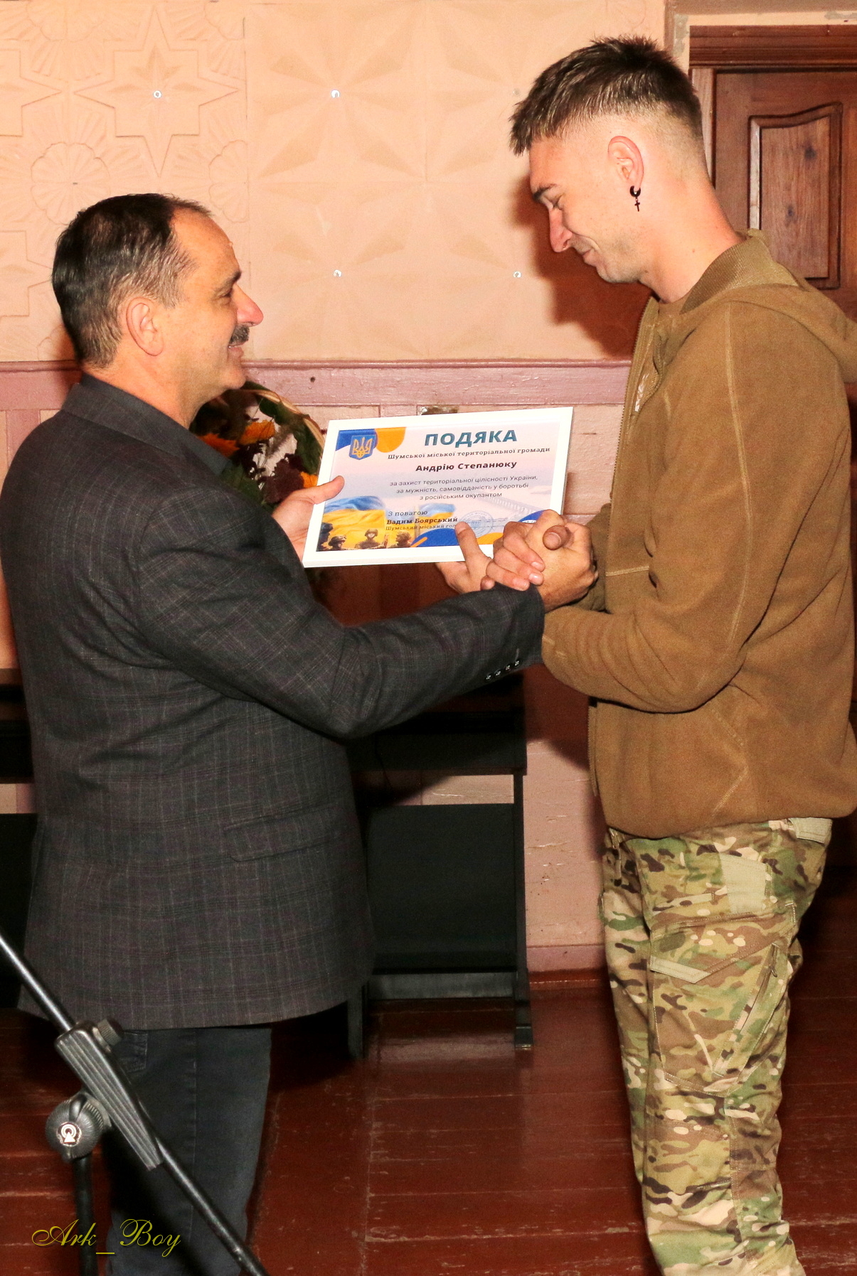За захист територіальної цілісності України, за мужність, самовідданість у боротьбі з російським окупантом керівник громади вручив подяки військовослужбовцям Шумщини.