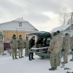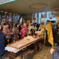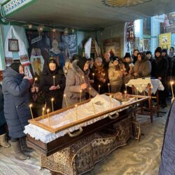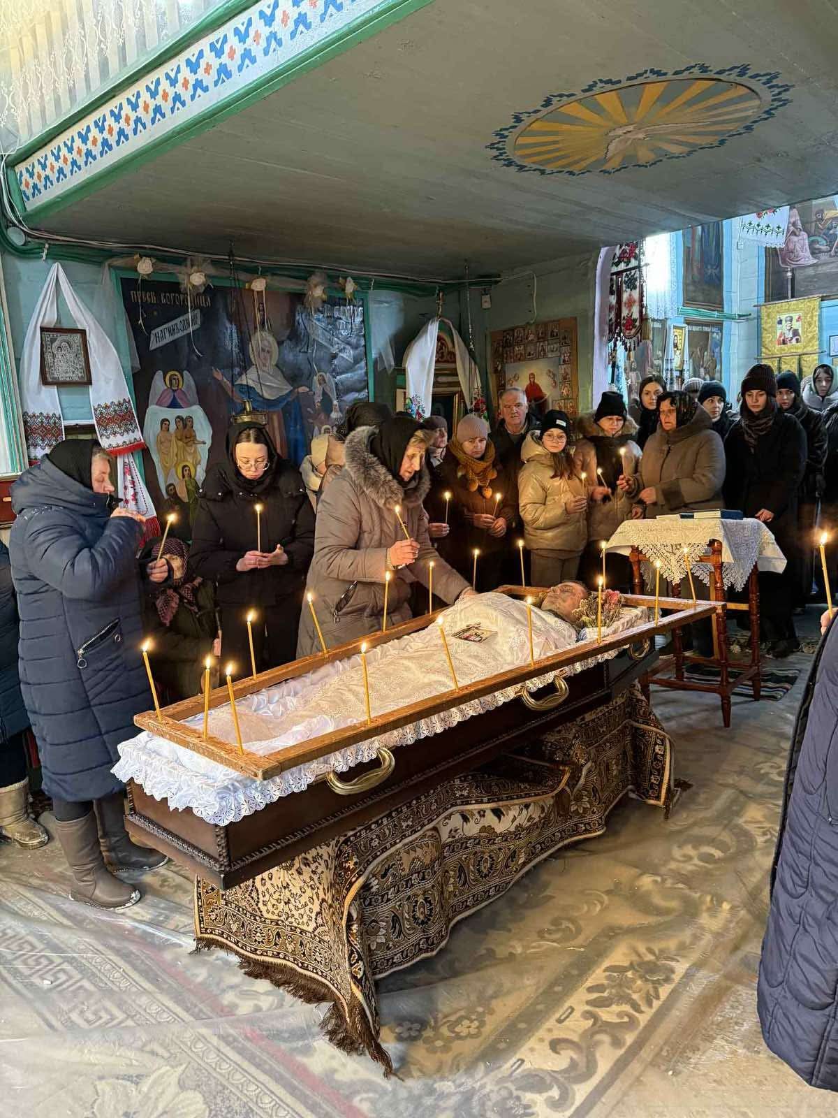 Загиблого воїна зустрічали навколішки усім селом. Його дорога додому стала останньою. Священнослужителі відправили заупокійну панахиду.