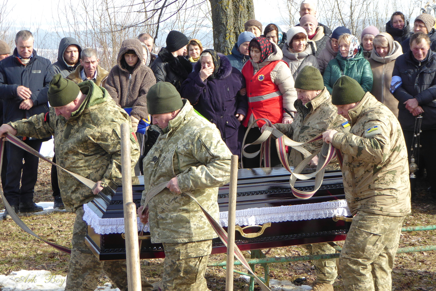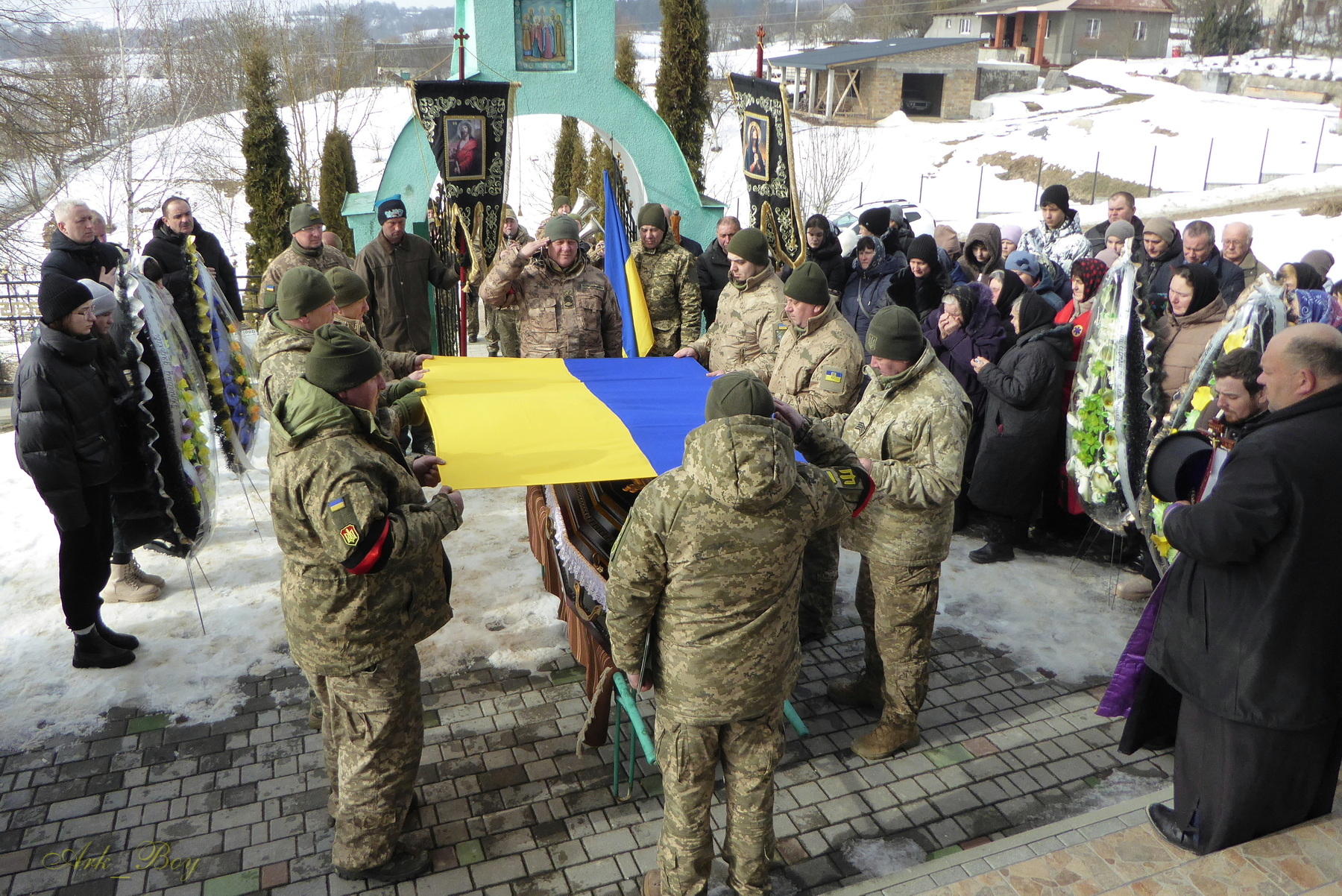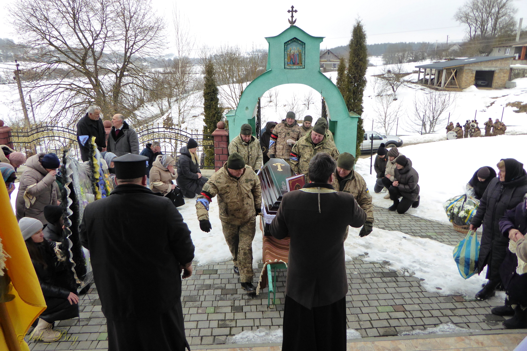 У сільському храмі відправили чин похорону за загиблим Героєм, далі процесія вирушила на місцевий цвинтар, де захисника поховали з усіма військовими почестями.